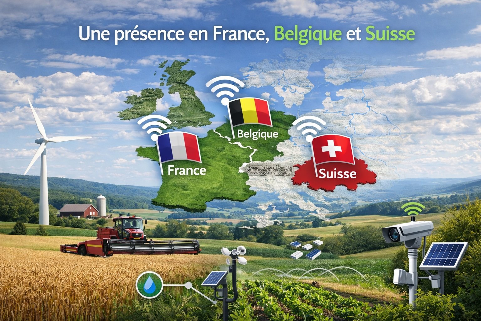 Solutions adaptées aux réseaux Proximus, Orange et Base pour capteurs agricoles, GPS et irrigation connectée.
